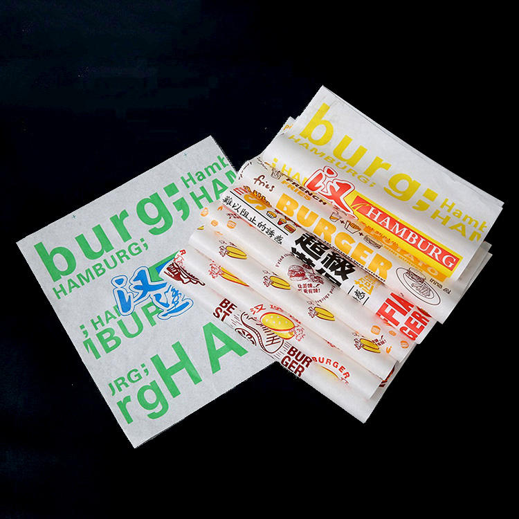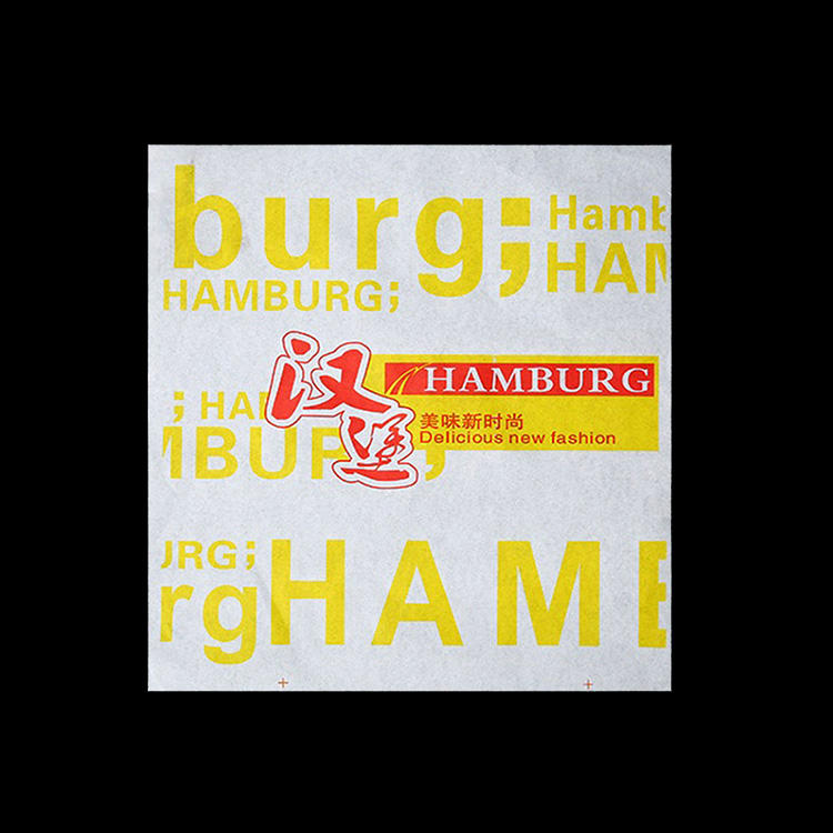 OEM:กระดาษห่ออาหารแฮมเบอร์เกอร์ทอดกันไขมันขนาดโลโก้