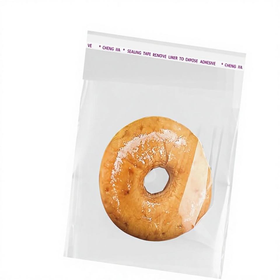 ถุงพลาสติกใส HDPE เกรดอาหาร ปิดผนึกได้ พิมพ์เฟล็กโซ ดีไซน์ก้นข้างแบบมีกาวในตัว สำหรับใส่เค้ก ขนาดและสีตามสั่ง