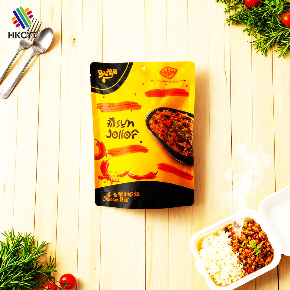 ถุงซิปล็อคแบบตั้งได้ พิมพ์ลายตามสั่ง เกรดอาหาร สำหรับบรรจุภัณฑ์อาหาร พร้อมรับประทาน เช่น พิลาฟ เยลลี่ ขนมขบเคี้ยวแห้ง บรรจุภัณฑ์อาหารแบบกำหนดเอง