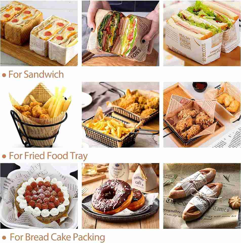 กระดาษห่ออาหารเกรดอาหารแบบม้วนเคลือบ PVC กันไขมันสำหรับแซนด์วิชและแฮมเบอร์เกอร์ พิมพ์โลโก้ของคุณเองได้ สำหรับบรรจุภัณฑ์อาหาร