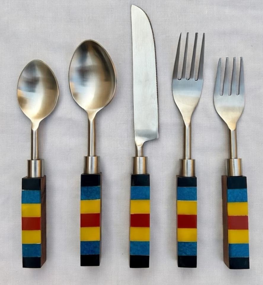 ชุดช้อนส้อมสแตนเลสสตีลเกรดอาหาร 18/8 แบบอเมริกัน เป็นมิตรกับสิ่งแวดล้อม พร้อมด้ามจับเรซิ่นขัดเงาอย่างดี ราคาสุดคุ้ม