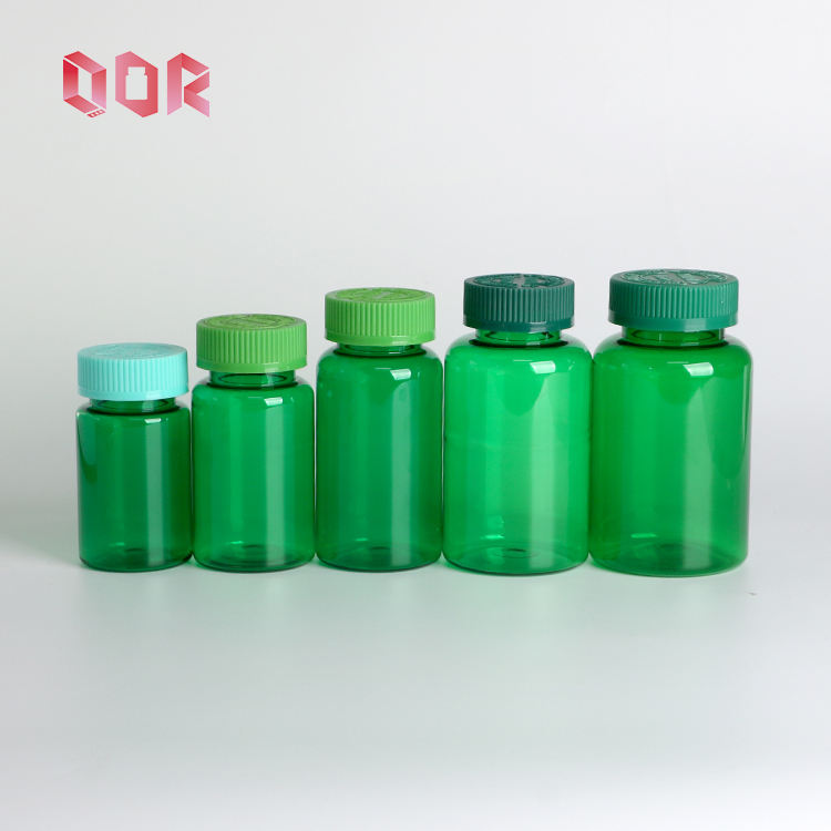 ขวดพลาสติกเพื่อสุขภาพ150มล. สำหรับสัตว์เลี้ยงเกรดอาหารแคปซูลสีเขียวพร้อมการกำหนดสีเขียว