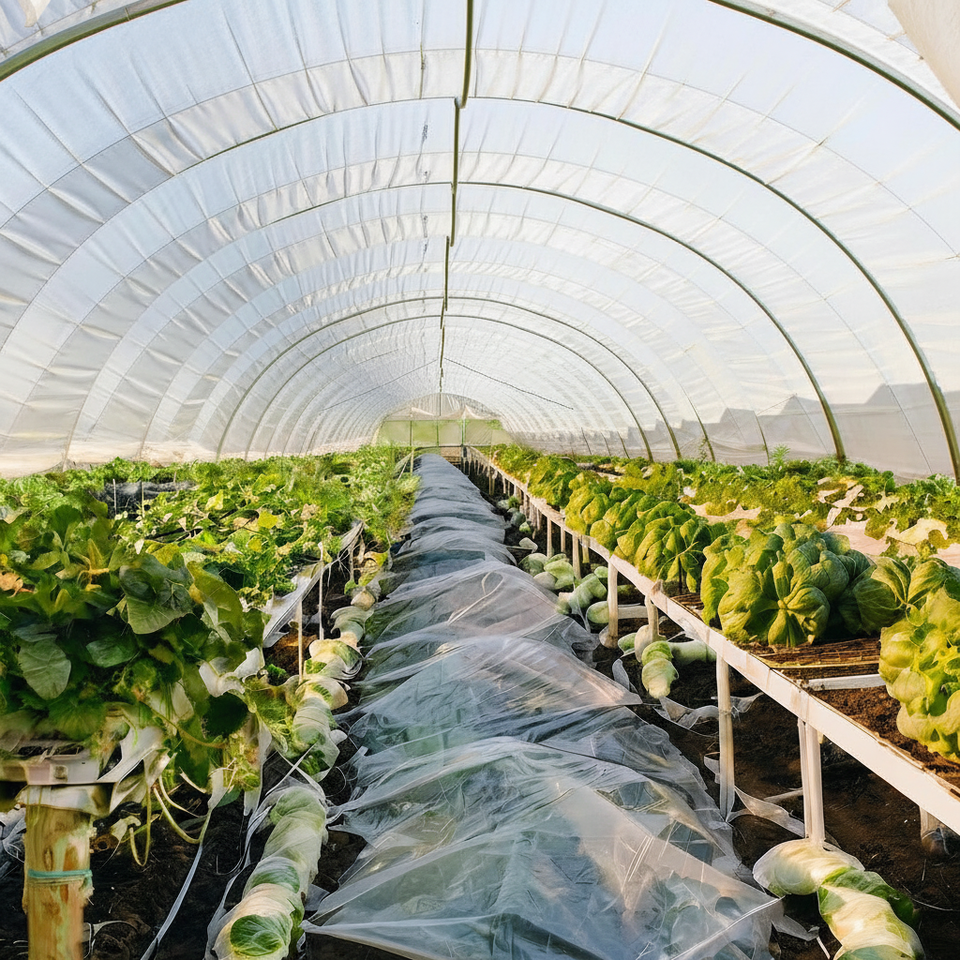 ฟิล์มพลาสติก PE เกรดอาหารสำหรับโรงเรือน ผิวมันเงา มีรูพรุน พิมพ์ลาย UV เก็บรักษาความร้อน เพิ่มผลผลิต ผัก ผลไม้ เมล็ดพันธุ์