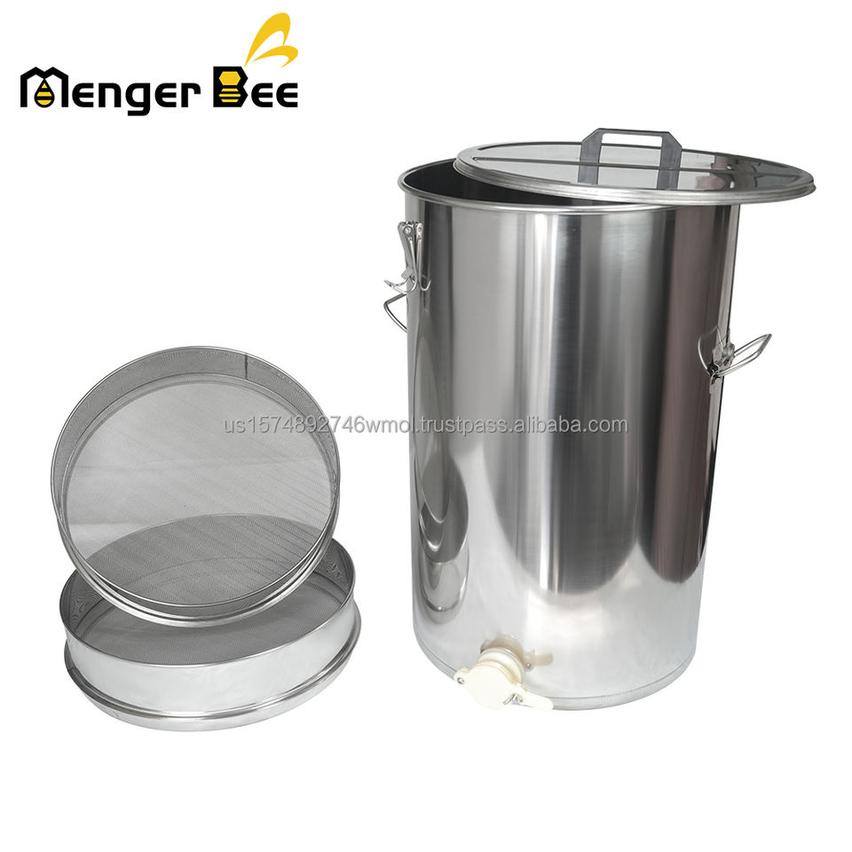 ถังน้ำผึ้งสแตนเลสเกรดอาหาร 201 ใหม่ พร้อมตะแกรงกรอง 2 ชั้นแบบถอดได้ รุ่น Menger Bee MS-HT-12 รับประกัน 2 ปี