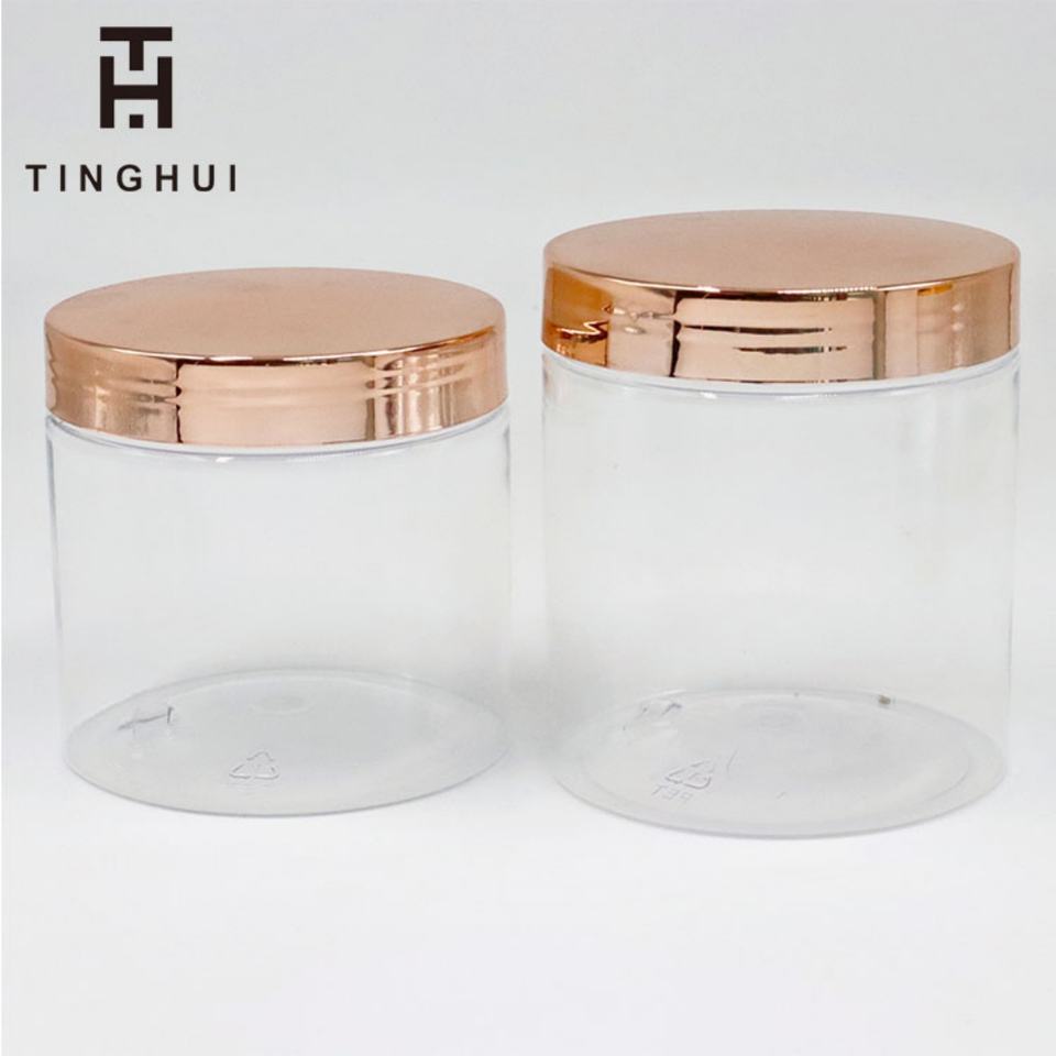 ขวดน้ำผึ้งเกรดอาหาร 150 มล. 250 มล. ขวดใสสีเหลืองอำพันสำหรับบรรจุครีมขัดผิว บรรจุภัณฑ์ขนาด 4 ออนซ์ 8 ออนซ์ ขายส่งพร้อมฝาสีชมพู
