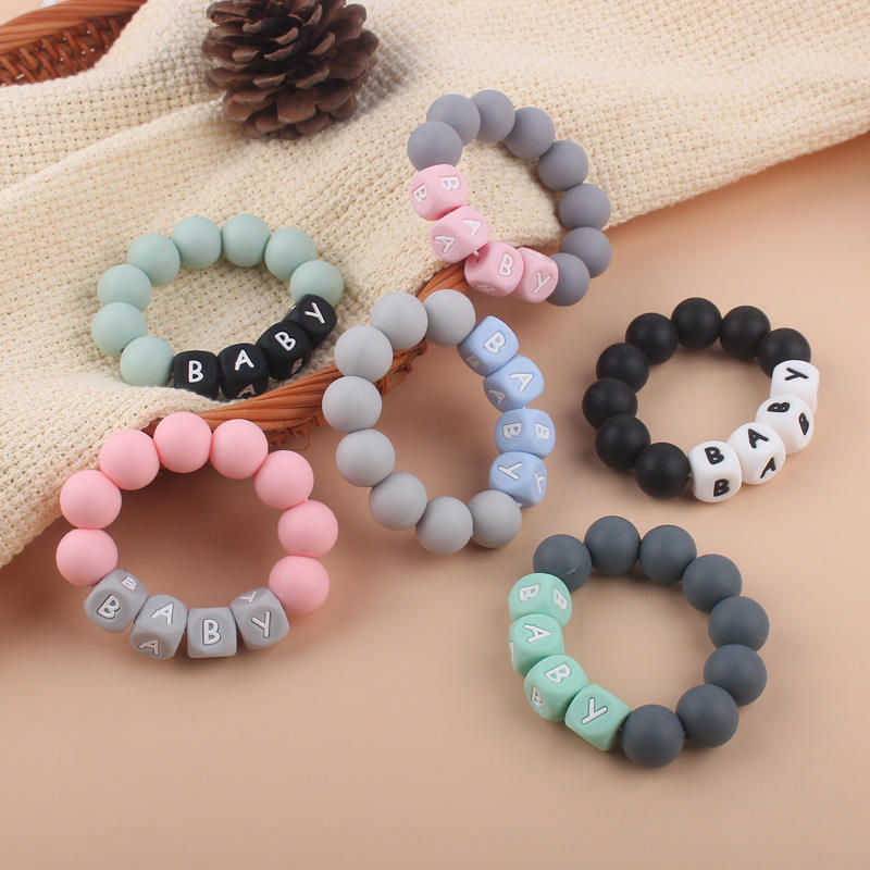 กำไลข้อมือซิลิโคนสำหรับทารกยางกัดของเล่นสำหรับเด็กเล็กเกรดอาหารออกแบบได้ตามต้องการ