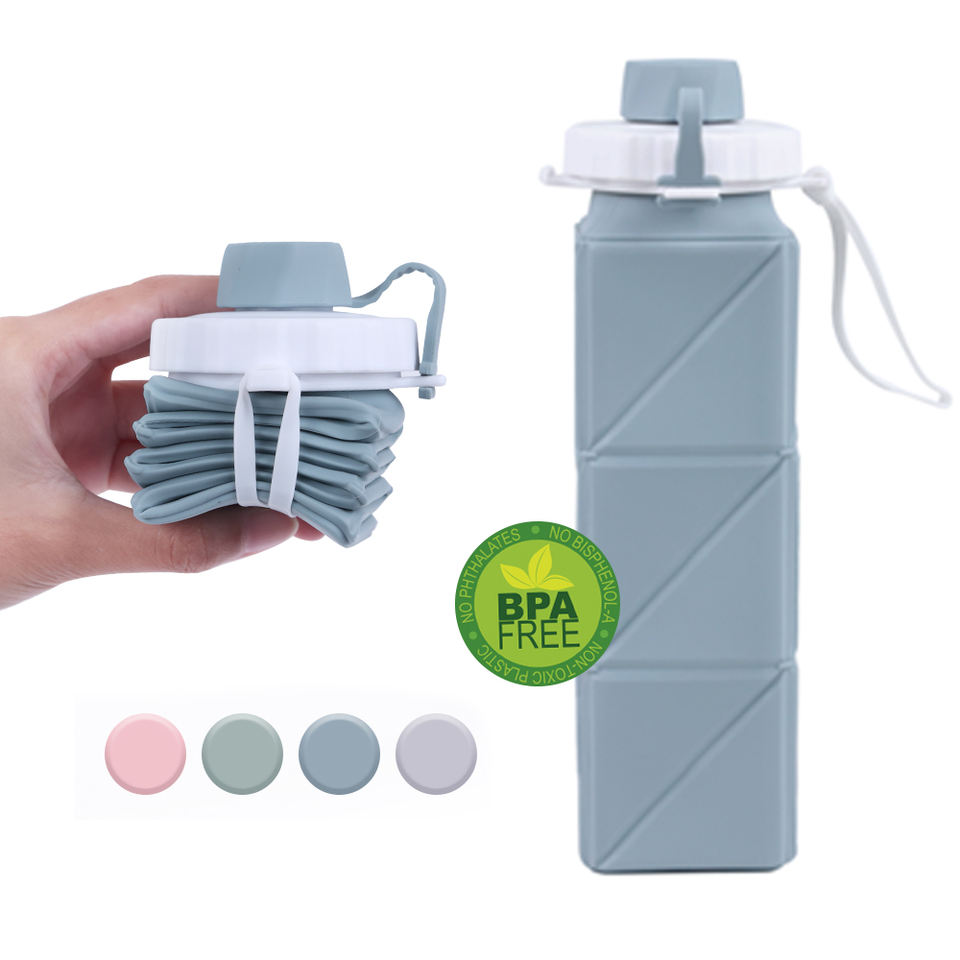 ขวดน้ำทำจากซิลิโคนเกรดอาหารสามารถพับเก็บได้ปราศจากสาร BPA ขวดน้ำหุ้มฉนวนสำหรับเล่นกีฬาใช้ในการเดินทางแคมป์กลางแจ้งของขวัญเพื่อธุรกิจ