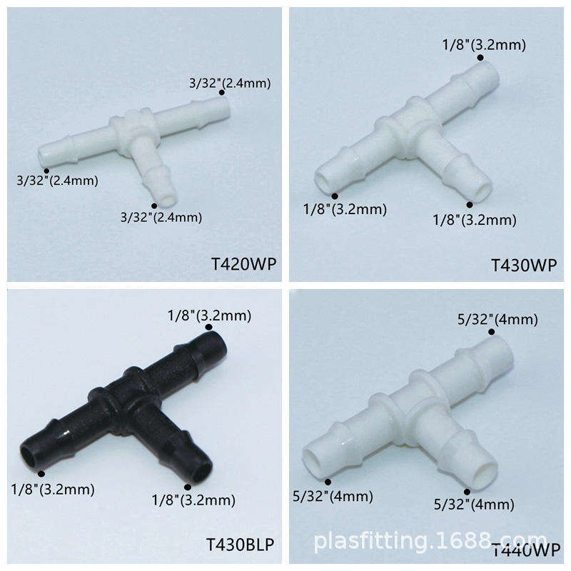 ข้อต่อพลาสติก PP เกรดอาหาร รูปตัว T ขนาด 3/32 1/8 5/32 นิ้ว แบบ Pagoda สำหรับท่อแข็ง ท่อน้ำหมึก ท่อน้ำ