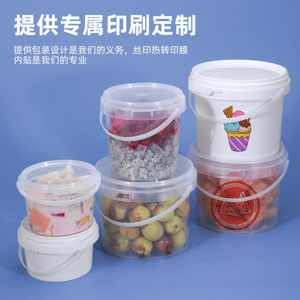 ถังพลาสติกเกรดอาหารทรงกลมแบบมีฝาปิดหนาพิเศษ ขนาด 350 มล. 4 ลิตร โปร่งใส สำหรับบรรจุภัณฑ์เก็บผลไม้