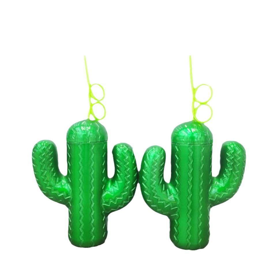 Food Grade Plastic Water Cup Tropical Rainforest Series Cactus Shape Water Cup for Beach and Camping