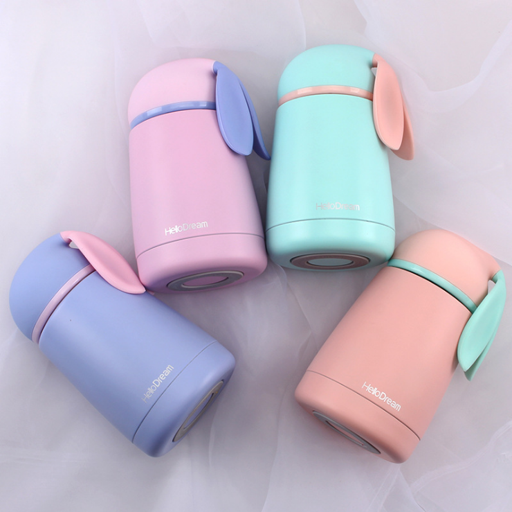 กระติกน้ำสแตนเลสสตีลขนาดเล็กผนังสองชั้นลายกระต่ายน่ารักสำหรับเด็กเก็บความเย็นให้ความอบอุ่น