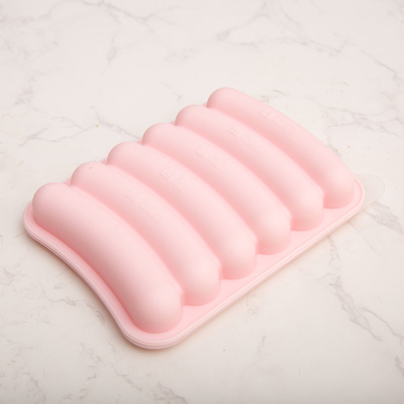 แม่พิมพ์ไส้กรอกซิลิโคนเกรดอาหาร 6 ช่อง ซิลิโคนแพลตตินัมแท้สำหรับการอบและแช่แข็ง รับทำโลโก้ตามสั่ง (OEM)