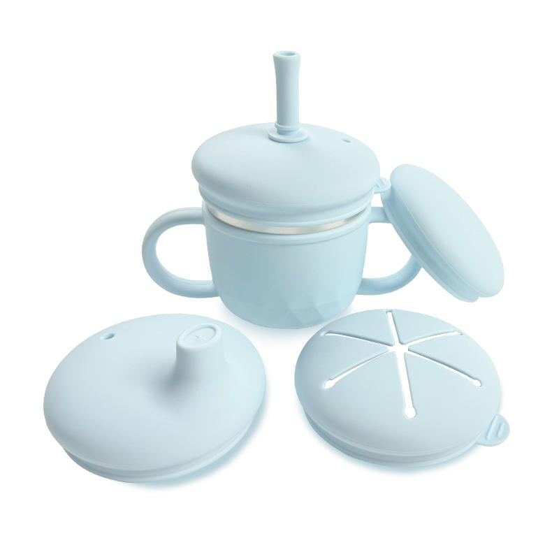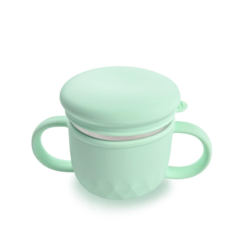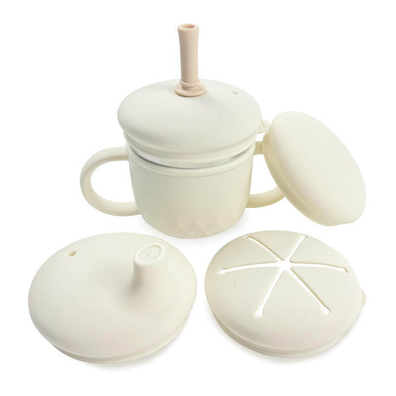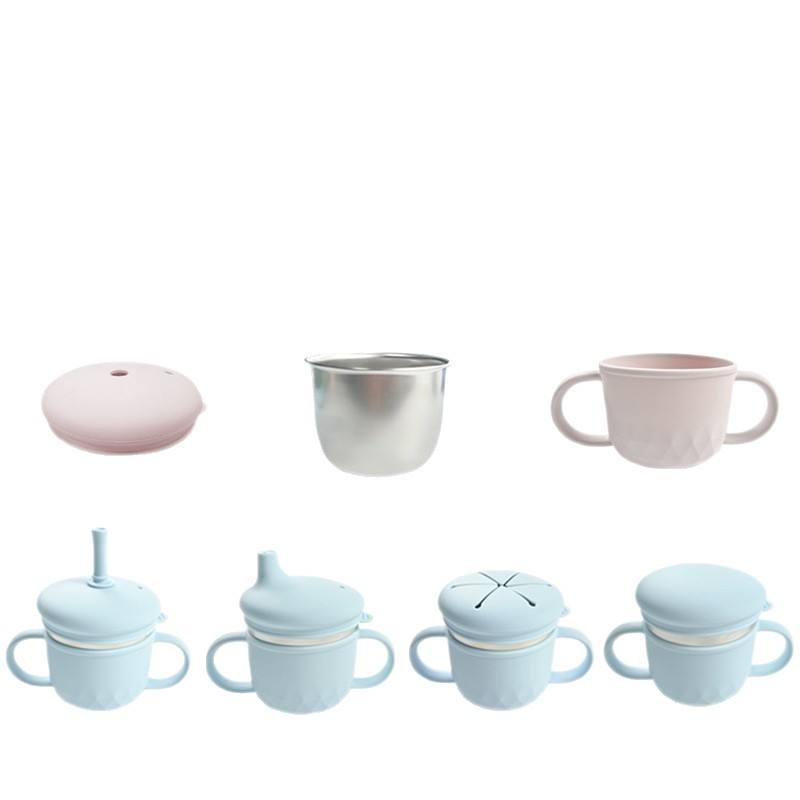 แก้วขนมเด็กพร้อมหลอดซิลิโคนเกรดอาหาร พร้อมหูจับ ป้องกันการตกหล่น ฝาปิดเปลี่ยนได้ ดีไซน์แบบสองในหนึ่งเดียว
