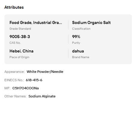 ชื่ออื่น ๆ:โซเดียมแอลจิเนต