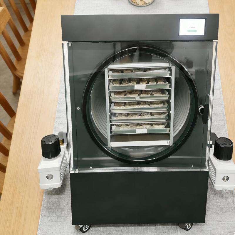 เครื่องอบแห้งแบบแช่แข็งขนาดเล็กสำหรับใช้ในบ้าน ทำจากสแตนเลสเกรดอาหาร พร้อมถาด