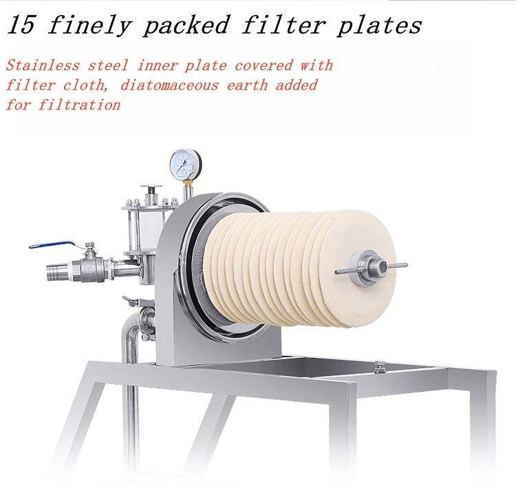 ตัวกรองไดอะตอมไมต์แนวตั้งทำจากสแตนเลสเกรดอาหารสำหรับการผลิตเบียร์ ไวน์ ไวน์เหลือง ไวน์แดง และสุรา