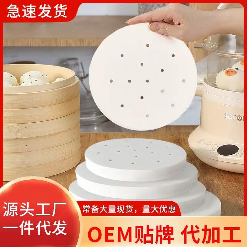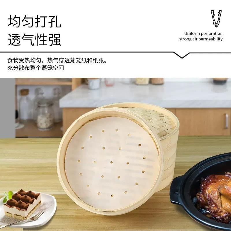 กระดาษนึ่งอาหารเกรดอาหารสำหรับซาลาเปาและหมั่นโถว 100 แผ่น แผ่นรองนึ่งเคลือบซิลิโคนแบบใช้แล้วทิ้ง ไม่ติดกระทะ สำหรับใช้ในครัวเรือน