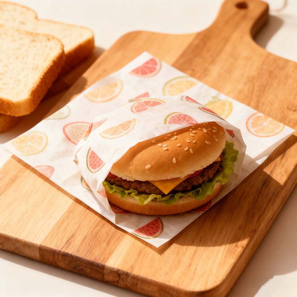 กระดาษไขเกรดอาหาร กระดาษห่อแฮมเบอร์เกอร์ กระดาษห่อแซนวิช พิมพ์โลโก้ได้ สำหรับครัว อบขนม ป้องกันไขมัน ห่อขนมปัง