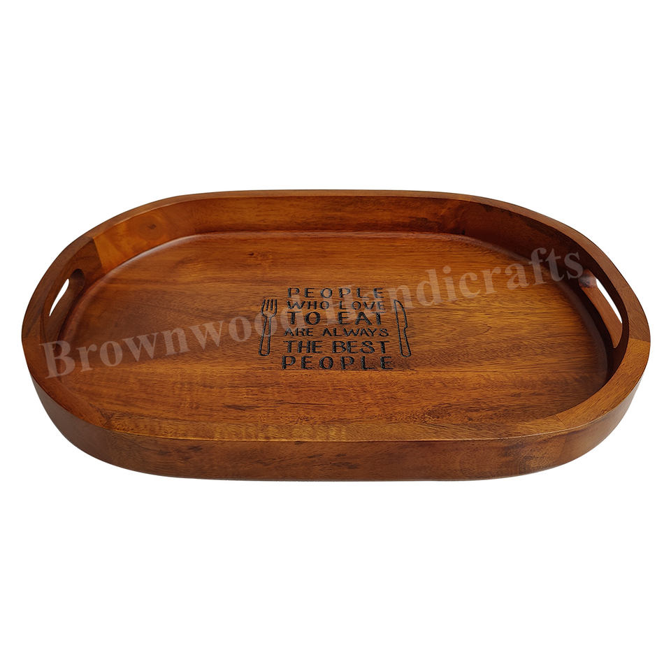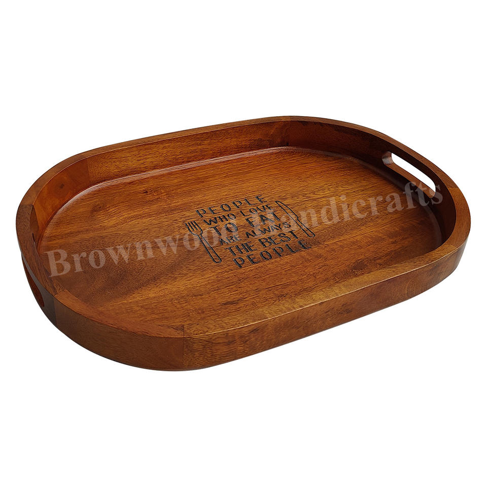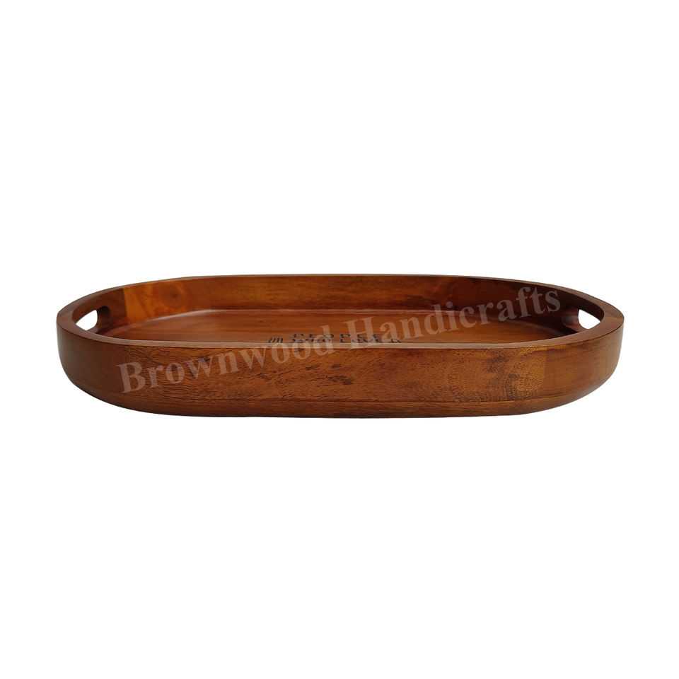 เกรดอาหารถาดไม้รูปไข่ถาดไม้มะม่วงสําหรับจับคลาสสิกตกแต่งบ้านห้องครัวห้องนั่งเล่นเคลือบถาดเสิร์ฟ