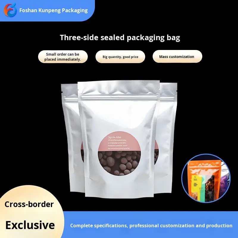 ถุงบรรจุภัณฑ์อาหารแบบกำหนดเอง สำหรับทุเรียน ถั่วแห้ง แบบปิดผนึกสามด้าน มีหน้าต่างและซิปด้านบน ปิดผนึกซ้ำได้