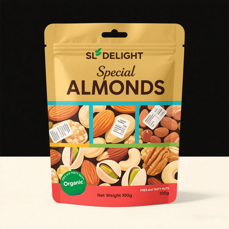 บรรจุภัณฑ์อาหารแบบซองตั้งได้ ขนาดต่างๆ สำหรับถั่ว มะพร้าวอบแห้ง ถั่วลิสง ขนมขบเคี้ยว แบบมีซิปล็อค