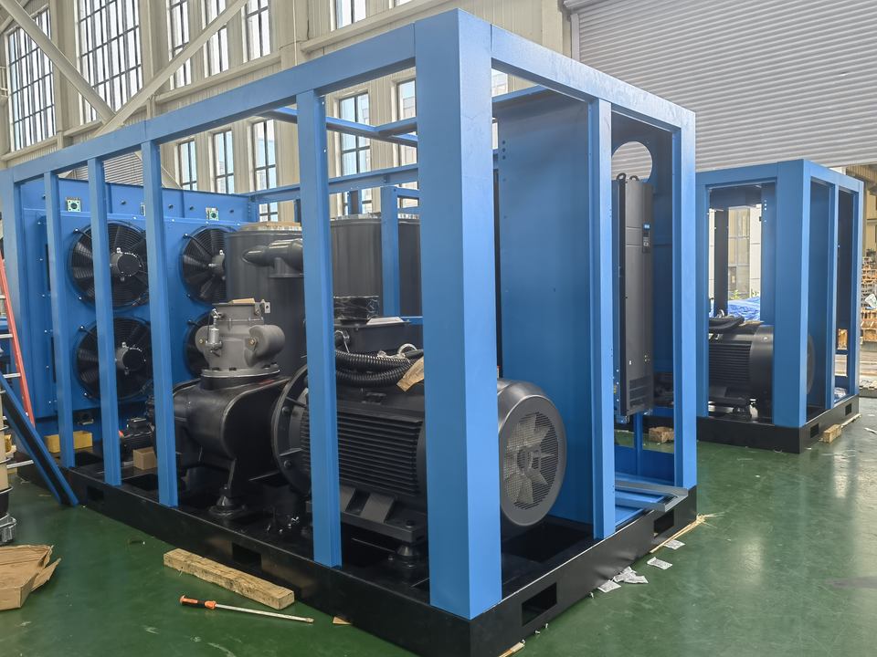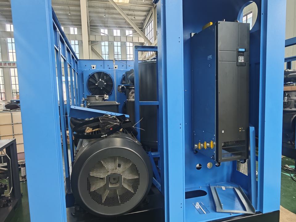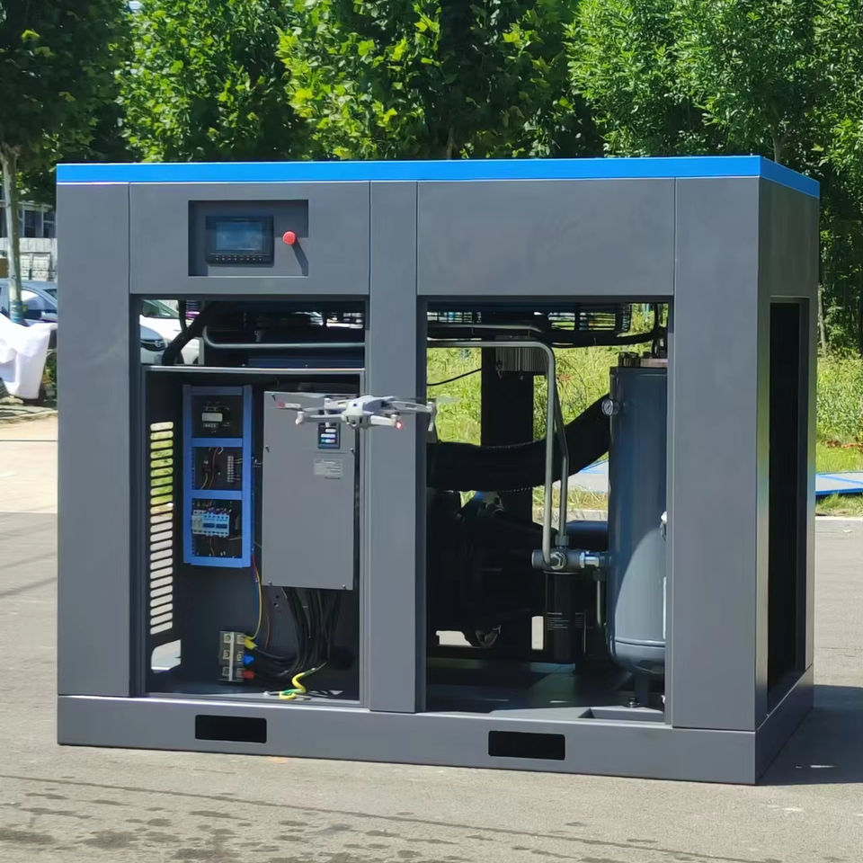 อุตสาหกรรมแปรรูปอาหารและจัดส่งก๊าซใช้เครื่องอัดอากาศแบบสกรูความเร็วคงที่ 110 กิโลวัตต์/150 แรงม้า ระบบระบายความร้อนด้วยอากาศแบบเงียบ 21 ลูกบาศก์เมตร/นาที 750 ลูกบาศก์ฟุต/นาที