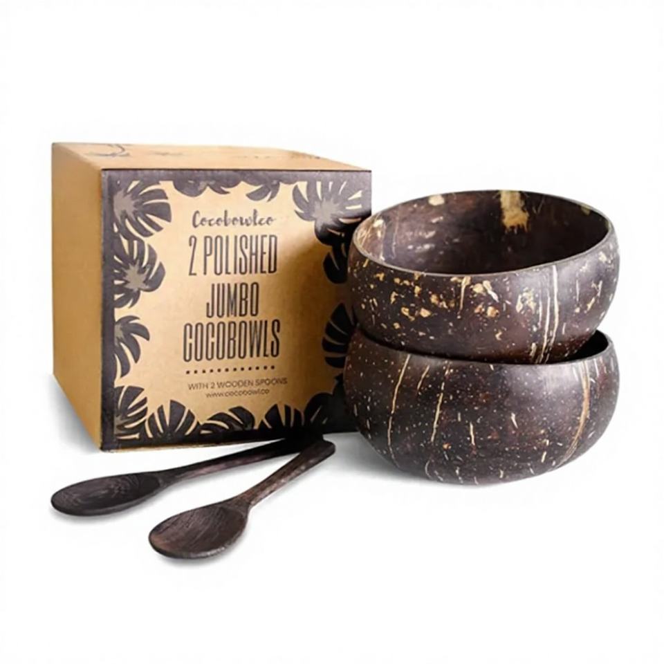 Food Safe Eco Friendly Coconut Shell Bowl Bamboo Spoon Set Fruit Reusable Free Microwave Safe Sustainable Tableware EU Wholesale