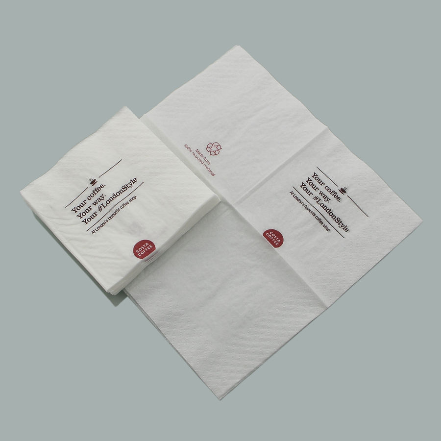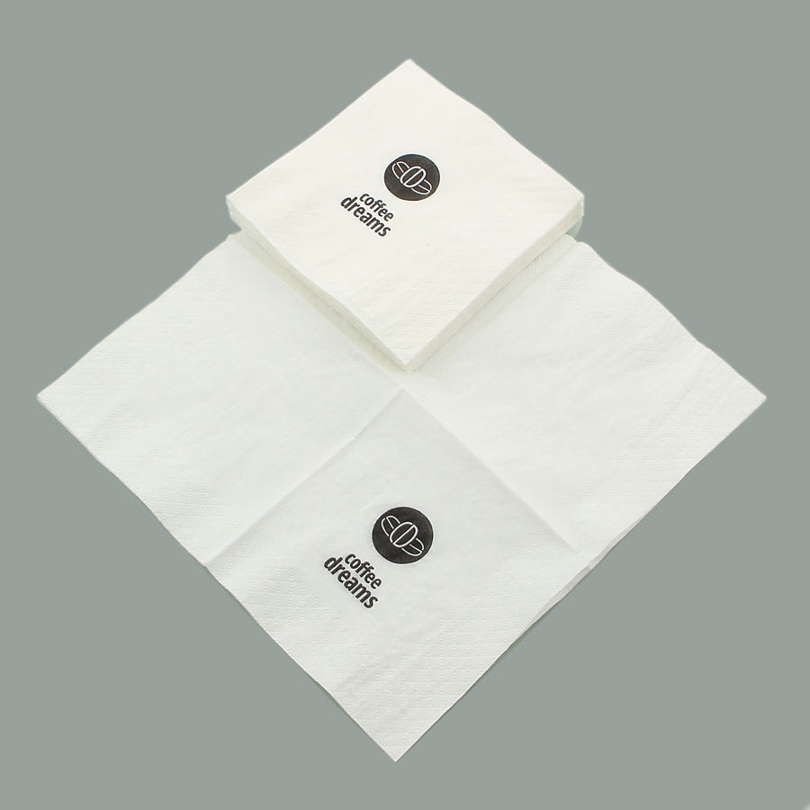 ผ้าเช็ดปากกระดาษค็อกเทลสีขาวปลอดภัยสําหรับอาหาร ผ้าเช็ดปากค็อกเทลย่อยสลายได้พร้อมพิมพ์โลโก้ ลูกสุนัขเวอร์จิน หลอดไผ่ เยื่อรีไซเคิล