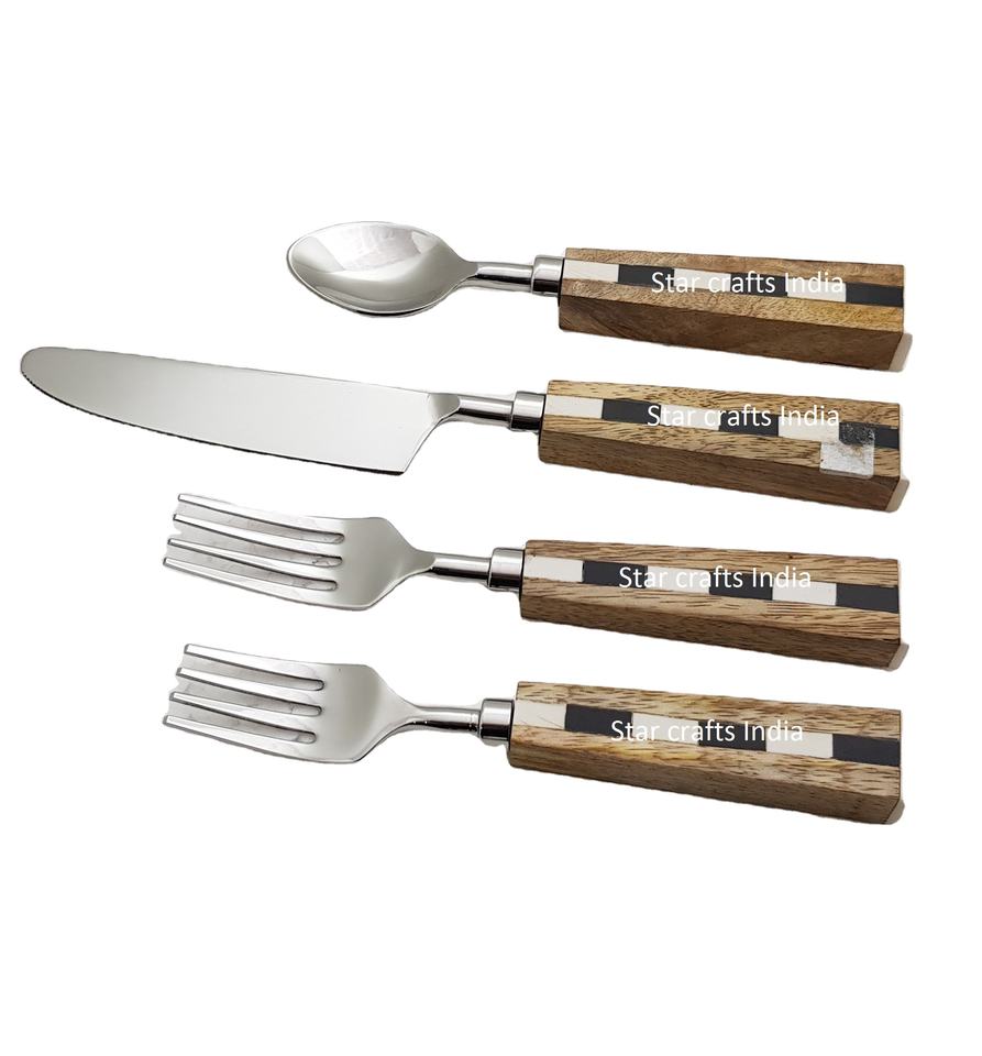 Food Safety Blue Resin Handle Flatware Kitchen Stainless Steel with Silvery Plated Spoon Fork & Knife Set of 3