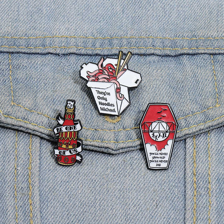 ชุดหมุดอาหารรูปการ์ตูนเข็มกลัดอาหารสัญลักษณ์สำหรับกระเป๋าปกเสื้อยีนส์เครื่องประดับของขวัญ