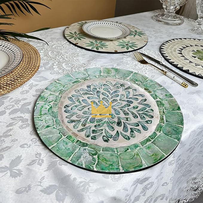 จานเซิร์ฟเวอร์เครื่องชาร์จอาหารสำหรับบ้านร้านอาหารภาชนะใช้สำหรับใช้จัดเลี้ยงอาหารจานเสิร์ฟพร้อมแผ่นรองจานโมเสค