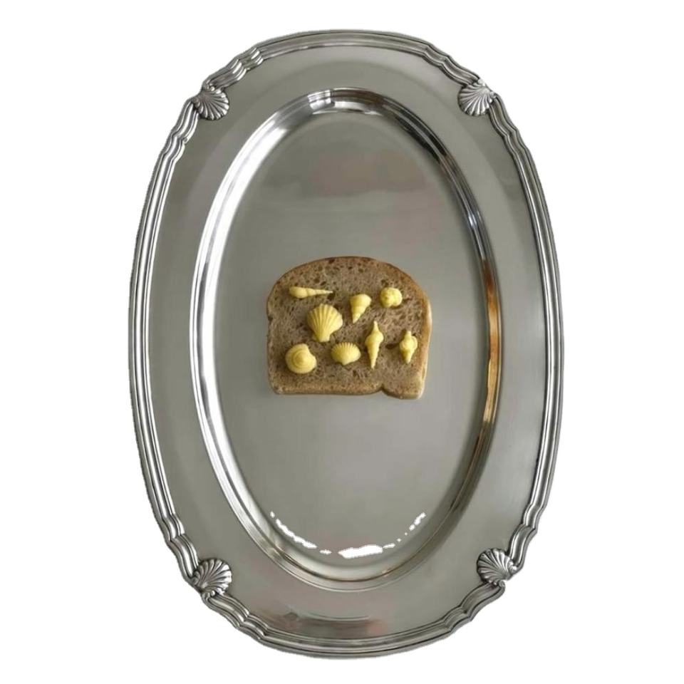 จานเสิร์ฟอาหารรูปวงรี ปลอดภัยสำหรับอาหาร จานทองเหลืองนำกลับมาใช้ใหม่ได้ เป็นมิตรกับสิ่งแวดล้อม จานรองสีเงิน รับสั่งทำตามขนาด