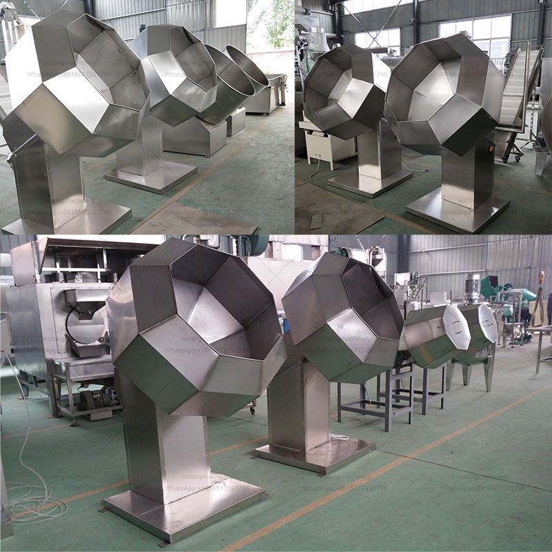 สเปรย์อาหารกระทะน้ําตาลDrageeเครื่องเคลือบถั่วลิสงขนาดเล็กถั่วTumbler Coaterอุปกรณ์อัตโนมัติแปดเหลี่ยมกลองเครื่องปรุงรส