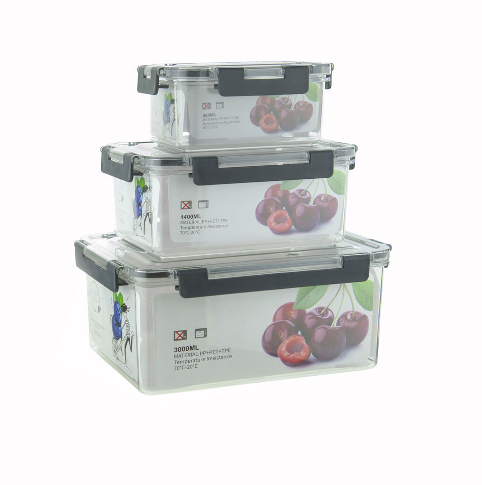ชื่อสินค้า:ชุดกล่องเก็บอาหาร 3 ชิ้น พลาสติก PET เกรดอาหาร