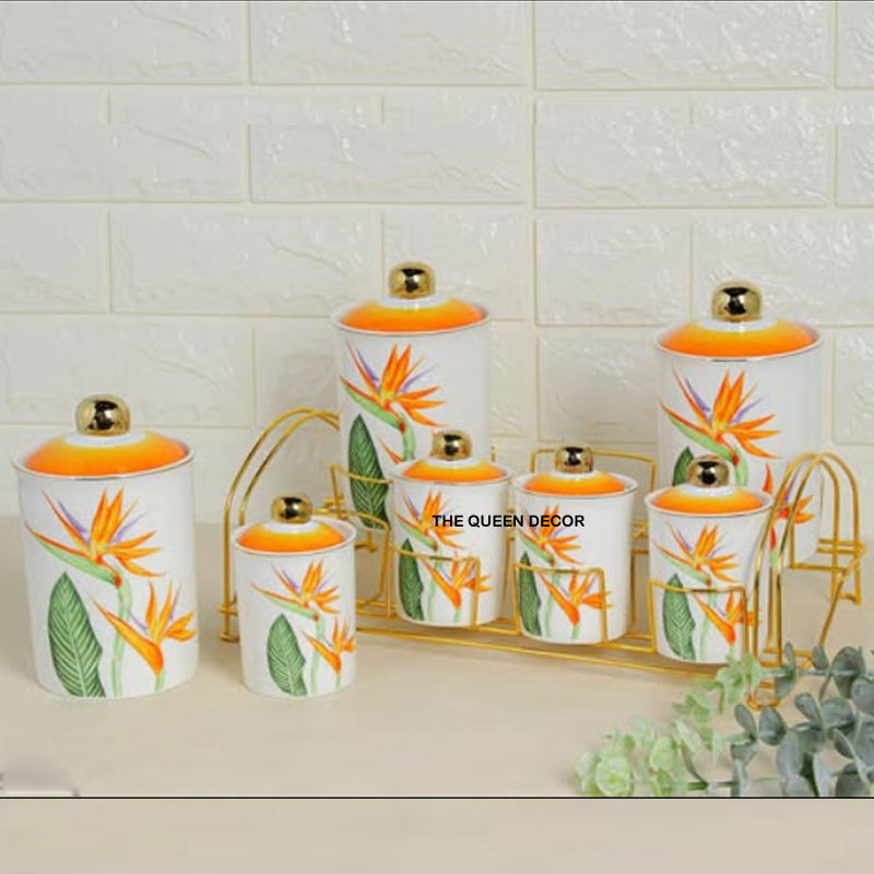 ชุดกระปุกเก็บอาหารขนาดเล็กและใหญ่ ดีไซน์หรูหรา สีเงินโบราณ ตกแต่งด้วยใบไผ่และกิ่งไม้สีเข้ม