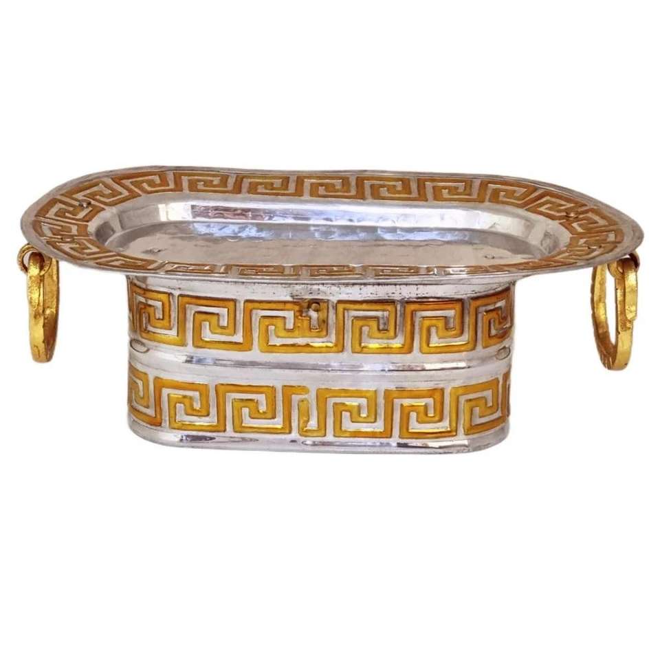 จานออร์กาไนเซอร์ใส่อาหารขนาดใหญ่ถาดอาหรับสีเงินสีทองด้ามจับออกแบบโลโก้ได้ตามต้องการเป็นมิตรกับสิ่งแวดล้อมตะวันตก