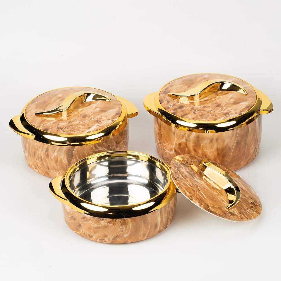 ชุดเครื่องอุ่นอาหารชุดหม้อปรุงอาหารภาชนะสเตนเลสหุ้มฉนวนพร้อมฝาปิดเหมาะสำหรับบุฟเฟ่ต์งานปาร์ตี้และมื้ออาหารทุกวัน