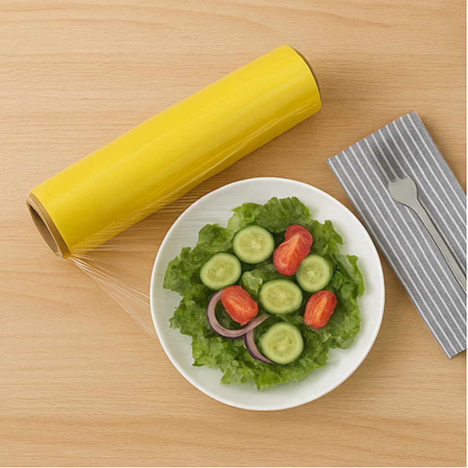 ม้วนจัมโบ้1500เมตรฟิล์มยืดถนอมอาหารติด10mic ห่ออาหาร