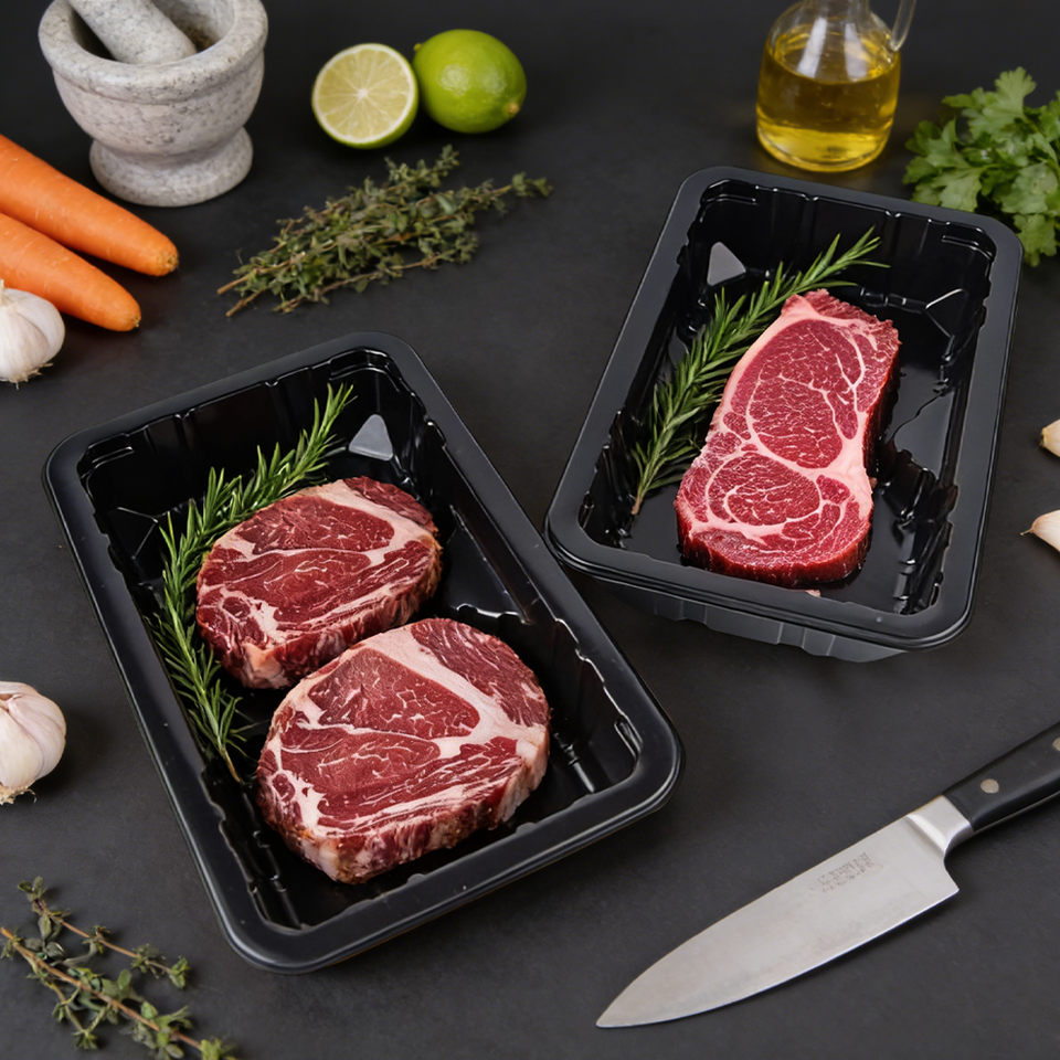 ถาดบรรจุภัณฑ์แบบซ้อนได้สำหรับอาหาร ปรับแต่งได้ตามต้องการ สำหรับเนื้อสัตว์ อาหารทะเล วัสดุ PP สำหรับผลิตภัณฑ์สดแช่เย็นและแช่แข็ง