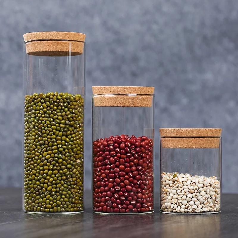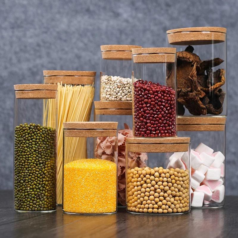 โถเก็บอาหารในครัวพร้อมฝาไม้ไผ่100มล. 200มล. 250มล. 500มล. 1000มล. เกรดอาหาร