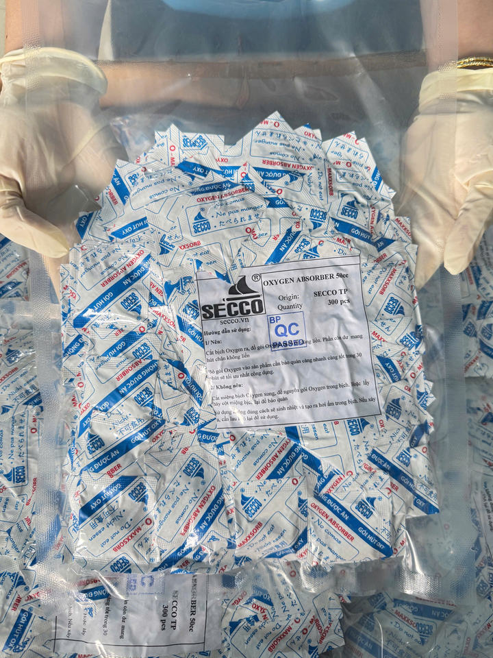 สารดูดออกซิเจนเกรดอาหารสำหรับถั่ว เค้ก ไส้กรอก O-Maxxsorb Secco Oxygen Scavenger 50cc 300 ชิ้นต่อถุง