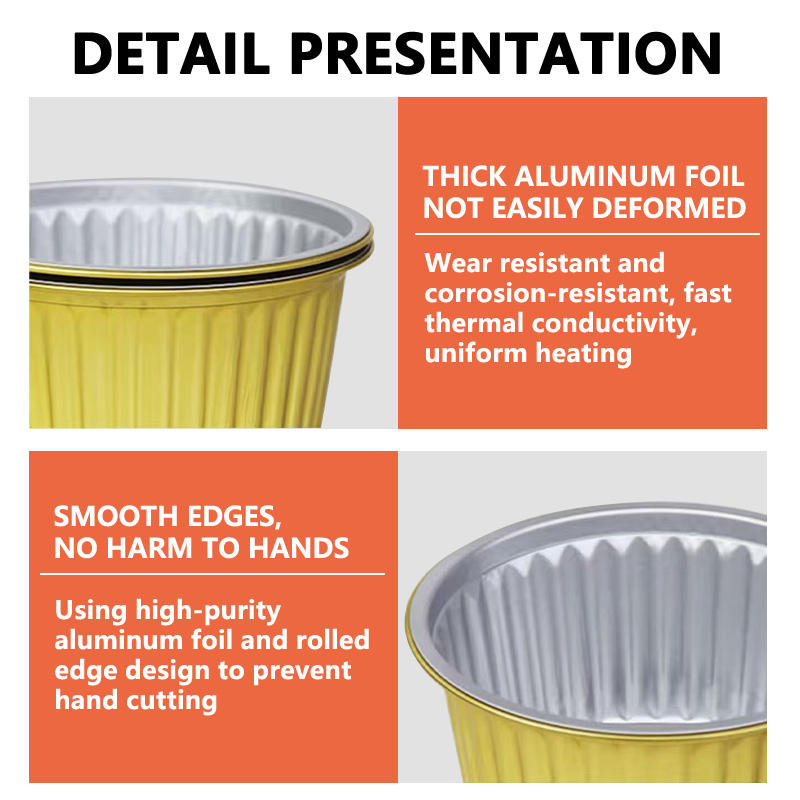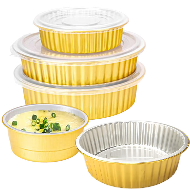 กล่องฟอยล์สีทองพร้อมฝาปิดบรรจุภัณฑ์แบบใช้แล้วทิ้งเกรดอาหาร