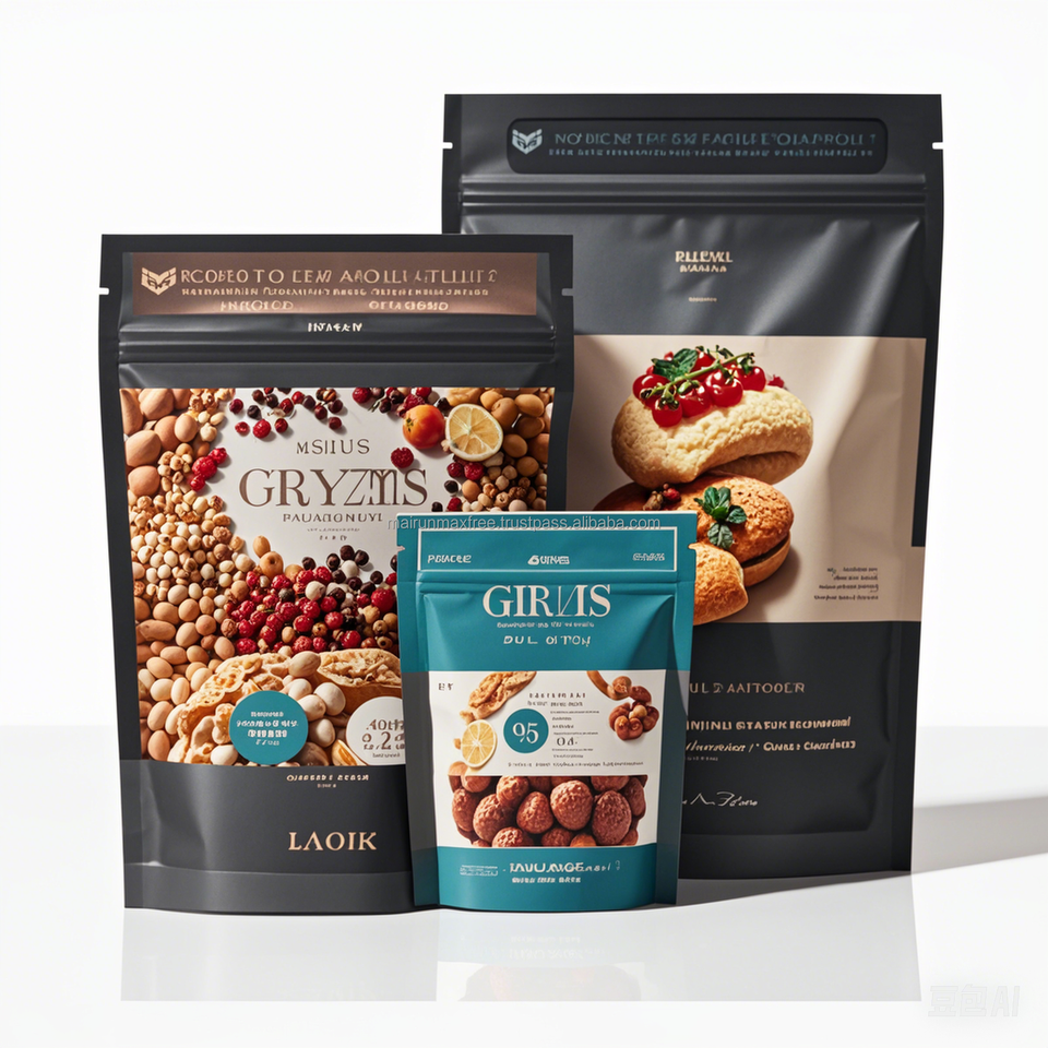 ถุงอลูมิเนียมหนาสำหรับใส่อาหารตั้งได้เองปิดผนึกด้วยพลาสติกเคลือบฟอยล์