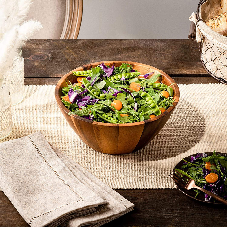 ชามสลัดไม้เนื้อแข็งอะคาเซียทรงกลม ขัดเงา น้ำหนักเบา ปลอดภัยสำหรับอาหาร สำหรับใส่ผลไม้ ข้าวโพดคั่ว สลัด โดย MULTI CRAFT