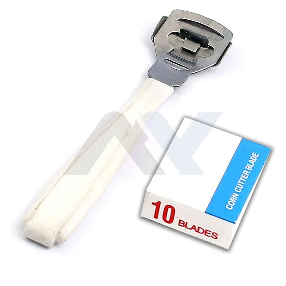 เครื่องมือดูแลเท้า กำจัดหนังด้านและหนังกำพร้าสีขาว พร้อมใบมีดขูดหนังด้าน 10 ใบ ชุดอุปกรณ์ทำเล็บเท้าครบชุดเพื่อผิวเรียบเนียน