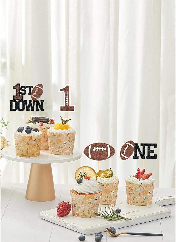 ที่เสียบตกแต่งคัพเค้กธีมฟุตบอลสำหรับวันเกิดครบรอบ 1 ปี ของเด็กผู้ชาย ของตกแต่งคัพเค้กสำหรับงานเลี้ยงฉลองวันเกิดและงานเลี้ยงเบบี้ชาวเวอร์