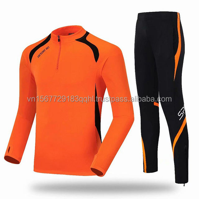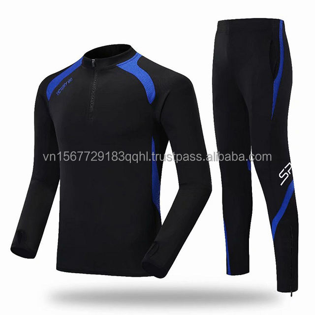 ชุดเสื้อฟุตบอลแบบซิปครึ่งตัว ระบายอากาศได้ดี พิมพ์ลาย กางเกงทรงสอบเข้ารูปสำหรับเด็กชายและเด็กหญิง ชุดฝึกซ้อมวิ่ง เสื้อแขนยาว