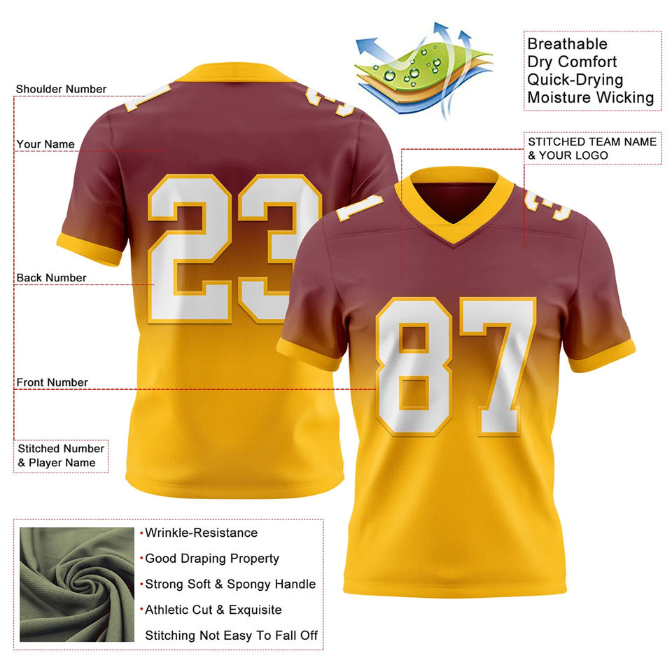 เสื้อเจอร์ซีย์ฟุตบอลเสื้อตาข่ายคอวีแขนสั้นทำจากโพลีเอสเตอร์อเมริกันฟุตบอลเสื้อเจอร์ซี่พร้อมหมายเลขทีมและชื่อ