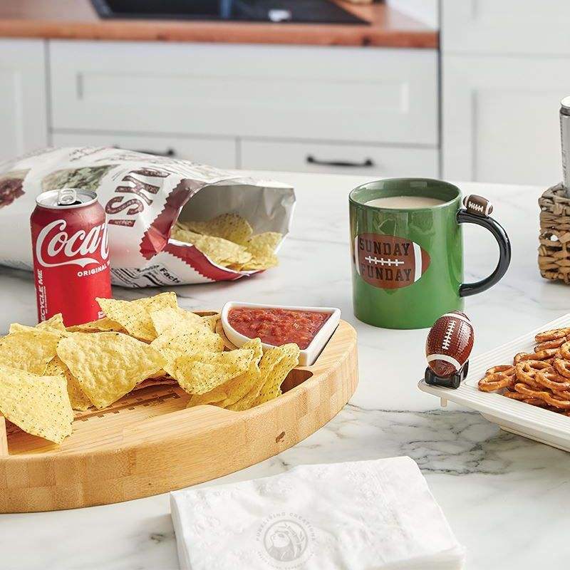 ถาดเสิร์ฟไม้ไผ่รูปทรงฟุตบอล ขนาด 10 นิ้ว x 16 นิ้ว x 2.5 นิ้ว พร้อมถาดใส่ซอส 2 ใบ จานเสิร์ฟชิปขนาดใหญ่สำหรับงานปาร์ตี้แฟนคลับ