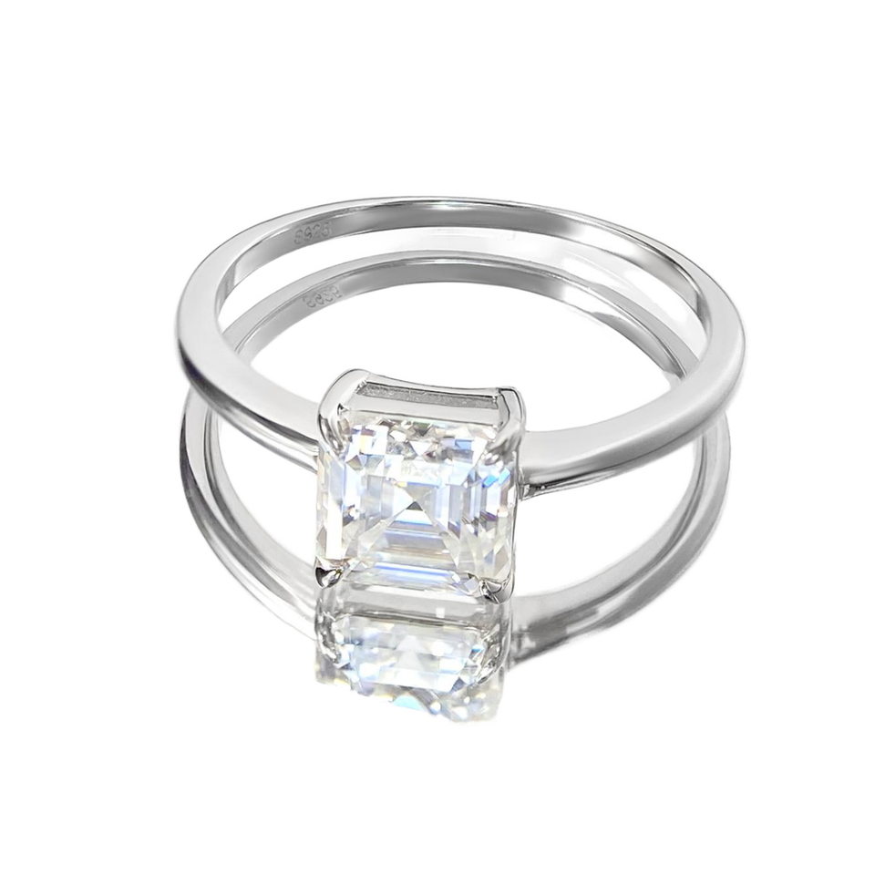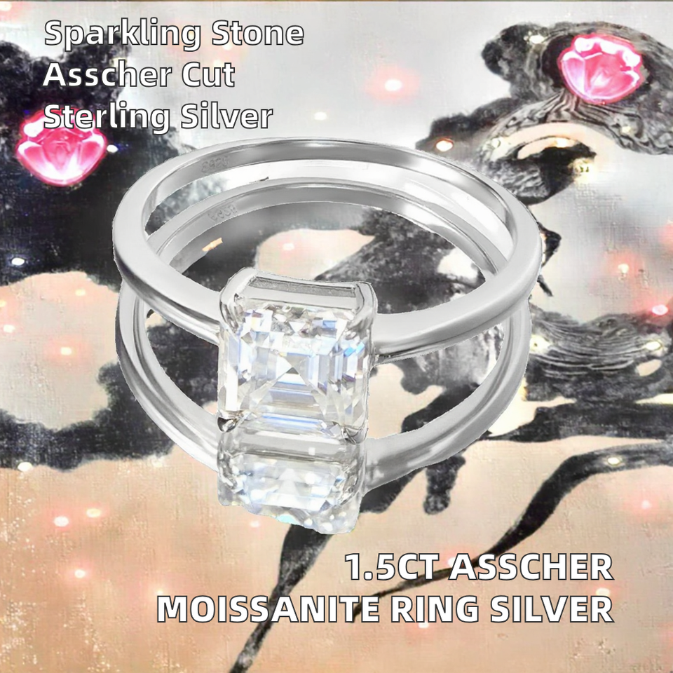แหวนหมั้นทรงคลาสสิกประดับเพชรโมอิสซาไนต์ทรงแอสเชอร์ 1.5 กะรัต ระดับความสะอาด VVS ได้รับการรับรองจาก GRA ชุบโรเดียม เงินแท้ 925 สำหรับผู้หญิง